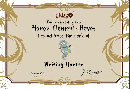That’s right folks, here is my latest ninja award. I’m the first to reach Hunter status at GKBC which is very satisfying as I am a big show off.