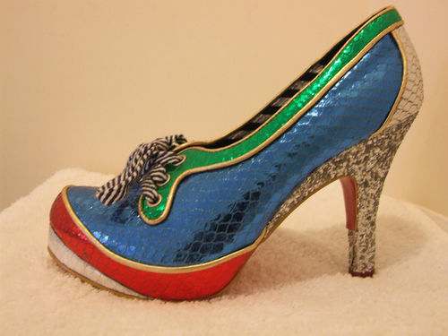Rewarded myself pretty well for the late work. It’s been a long time since I bought any Irregular Choice shoes, mainly because the sizing is just ridiculously difficult to judge and I’ve been less impressed with their designs over the last couple of years. However, I spotted the shoe version of my much debated parrot / Wonderwoman / Power Ranger boots and just had to have them.