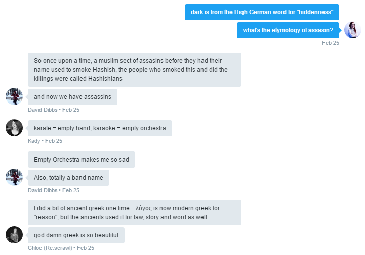 - People to talk about etymology with