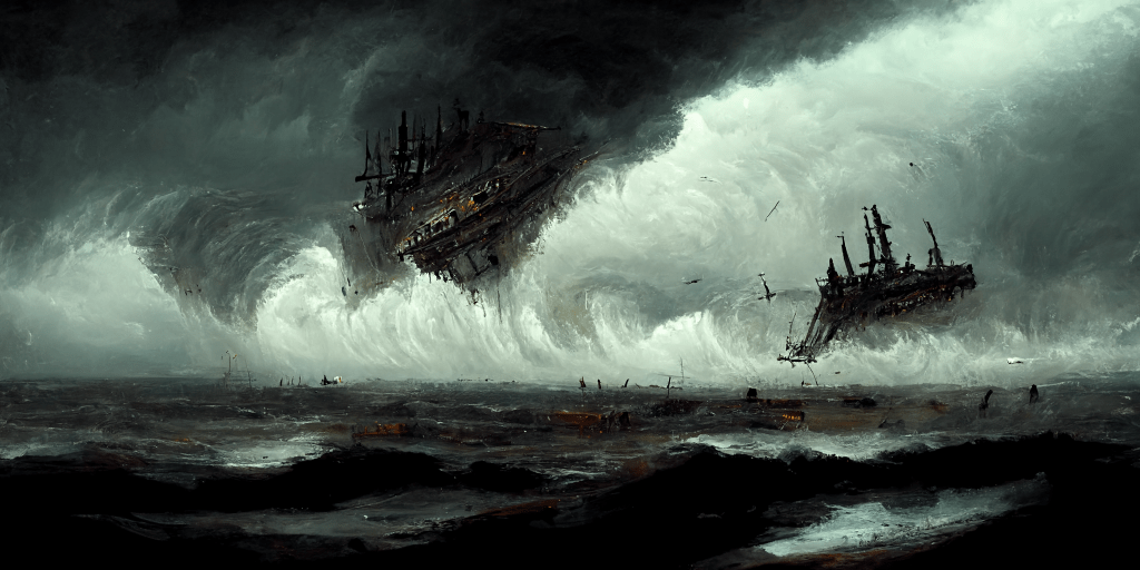 Most AI art tends towards darkness. I think some of that is us humans giving it dark concepts because that’s what we’ve come to expect – it’s futuristic dystopia to us, so that’s what we feed it.