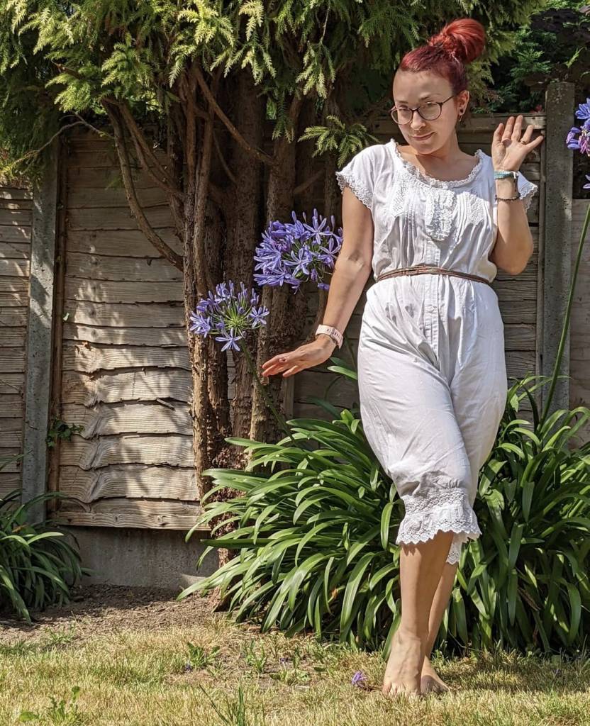 Bloomers are not in plentiful supply at all, but you can sometimes find Edwardian pieces in good condition. They may have a split crotch but that’s easily sewn up if you’re OK with rudimentary form fitting (there’s a lot of extra fabric to get rid of to make a flattering bloomer bum). I did this on some turn-of-the-century cotton Horrockses combinations, which make a fabulous jumpsuit for a scorching summer day.