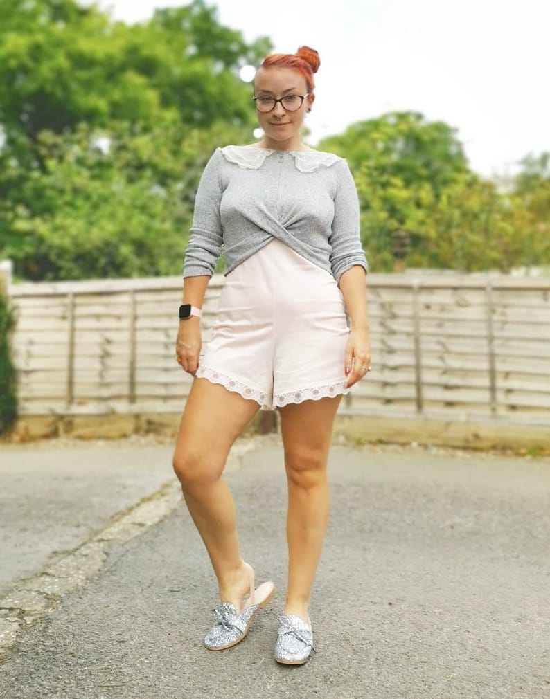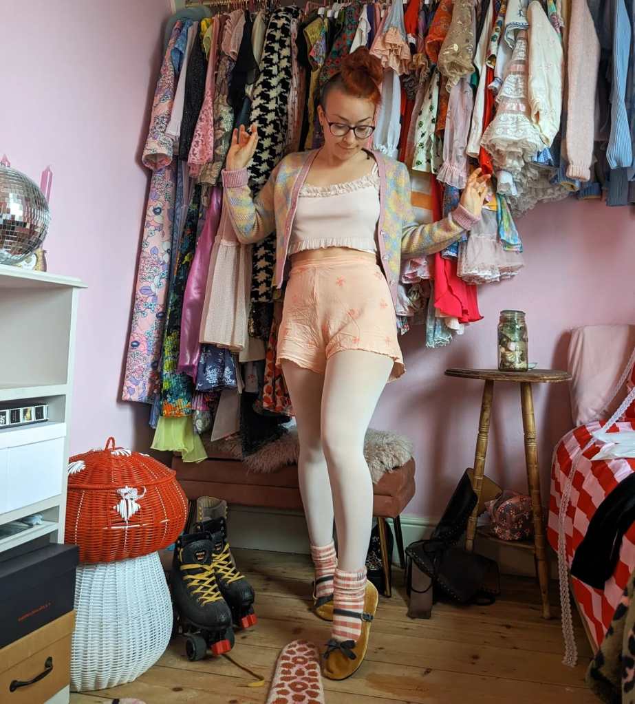 I use waspies (soft waist girdles) and garter belts under knickers and over 50s petticoats to fill that gap. It makes me feel less exposed, it adds some seriously cute layered detail at the waist and the hanging suspenders look cool af under shorts. You can even use them to keep up some nice long woolly socks. It’s the height of baby-soft boudoir.