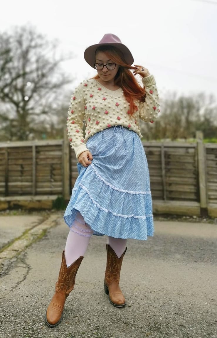 One thing to watch out for: waist measurements are usually quite small and older items won’t have stretch or elastic, so size up for comfiness and easy wearing.