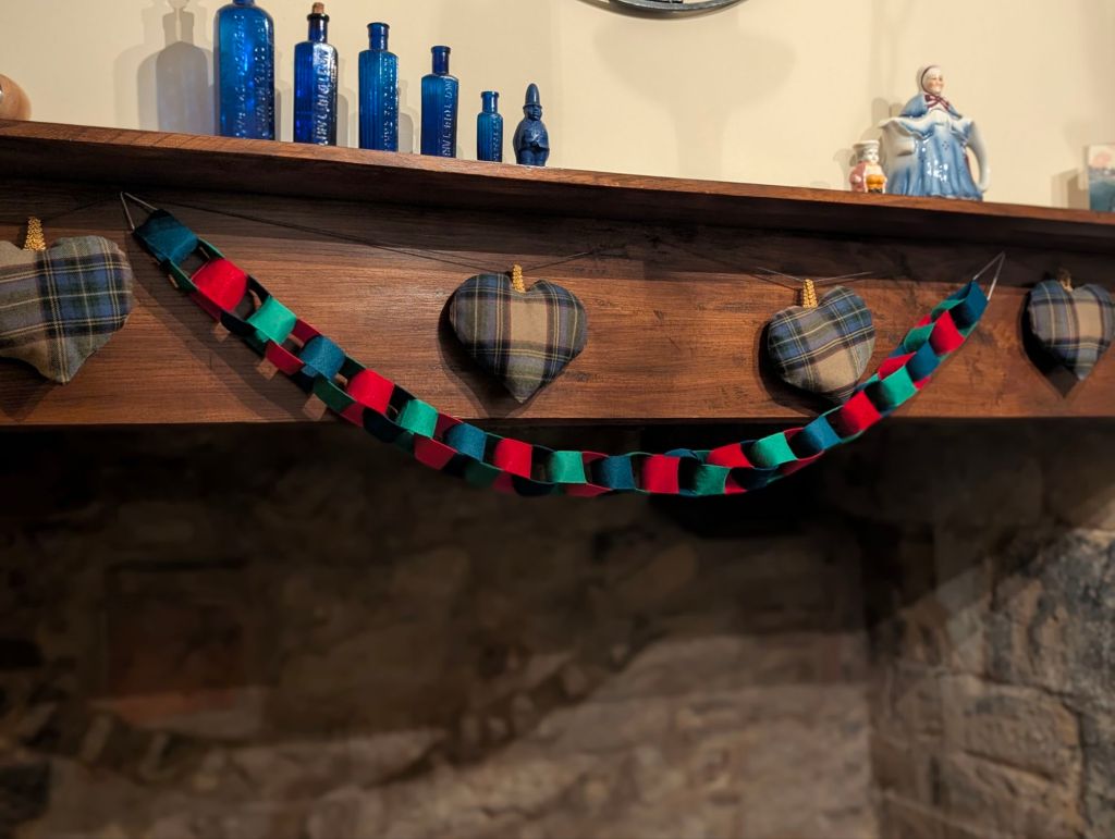 My parents went away for a week and I didn’t want them to come back to Christmas everywhere except their house, so I made a paper chain from felt.